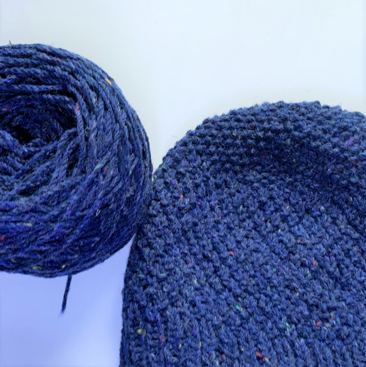 Sample worked in Aran Wool by Kerry Woollen Mills (334 m/ 365 yards per 200 grams) in colourway “Blue Fleck”