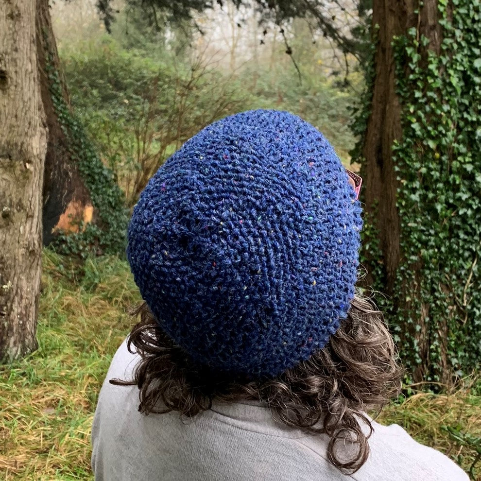 Caonach is the Irish word for “Moss”, which describes this hat perfectly, because it is made up of single and double moss stitch. The traditional Aran wool gives the hat flecks of colour which look great with the texture. This hat is perfect for stormy days by the sea or any other occasion when you want to protect your head from the elements.